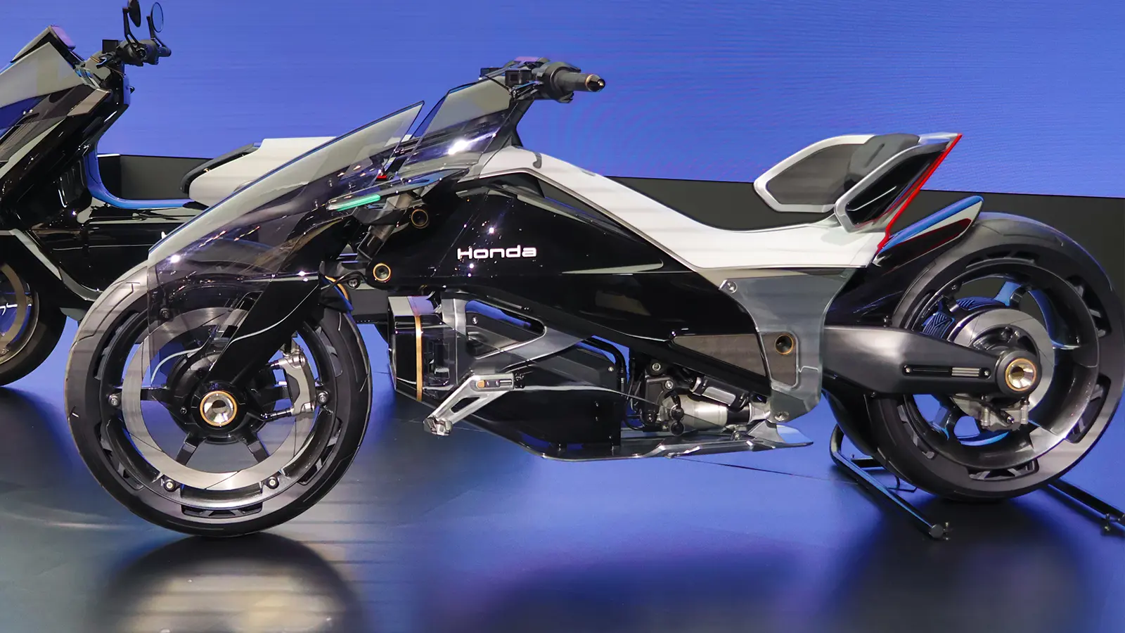 Honda también presentó un concepto radical de motocicleta eléctrica llamado OutLier. Tiene una gran distancia entre ejes, una carrocería que parece sacada de una película de ciencia ficción y una posición de asiento relajada como la de un helicóptero de los años 60. El OutLier no tiene especificaciones ni planes de producción inmediatos, pero definitivamente es algo diferente.